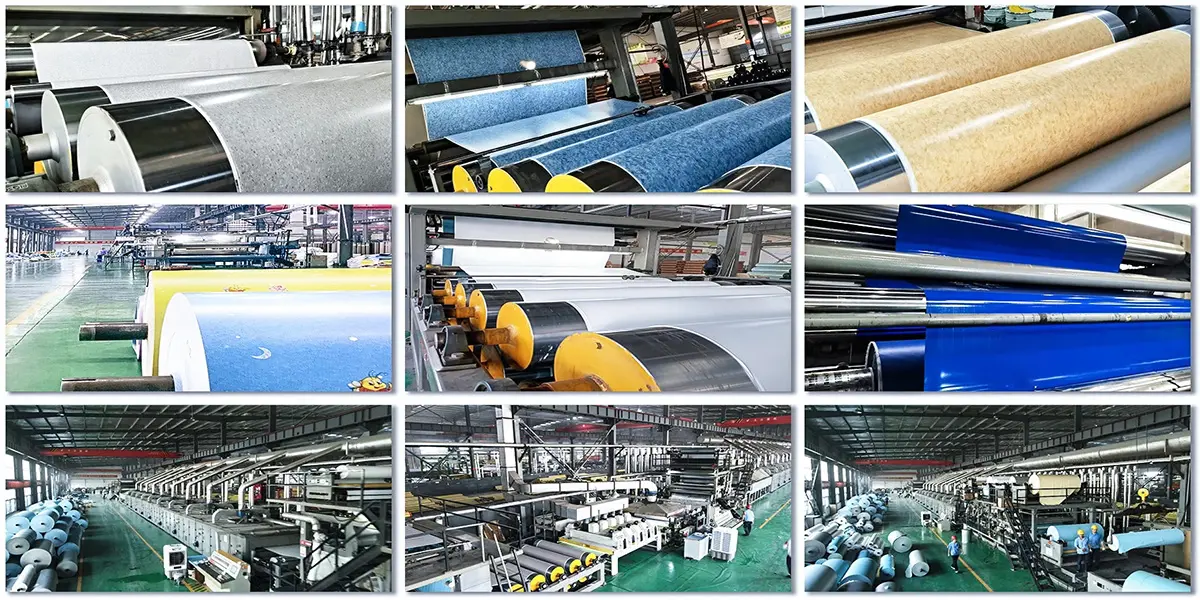 HAODIBAN brand sells various types of flooring such as PVC solid, Vinyl sports, PVC foam, PVC homogeneous, SPC, and LVT.